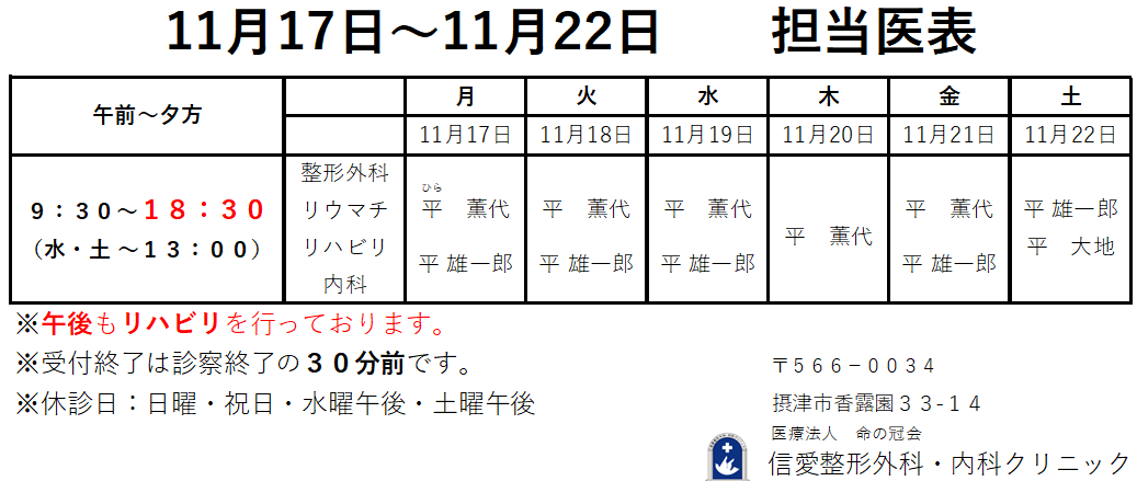 11/17~ 平 雄一郎医師が当クリニックの常勤医師に就任いたします。