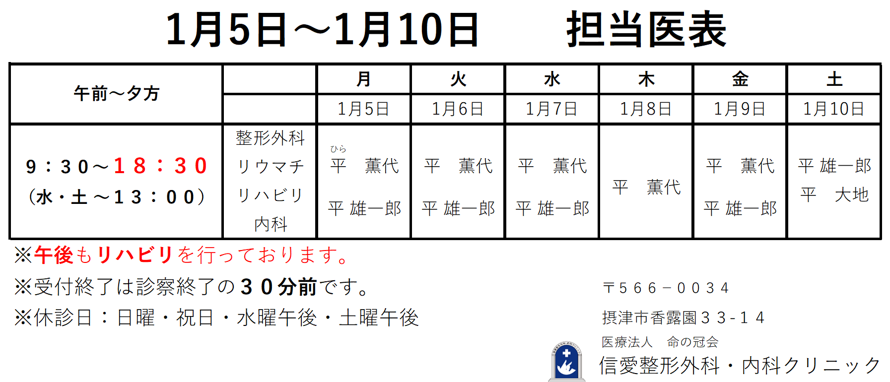 (最終受付は診察終了の30分前まで)担当医:平 薫代、平 雄一郎